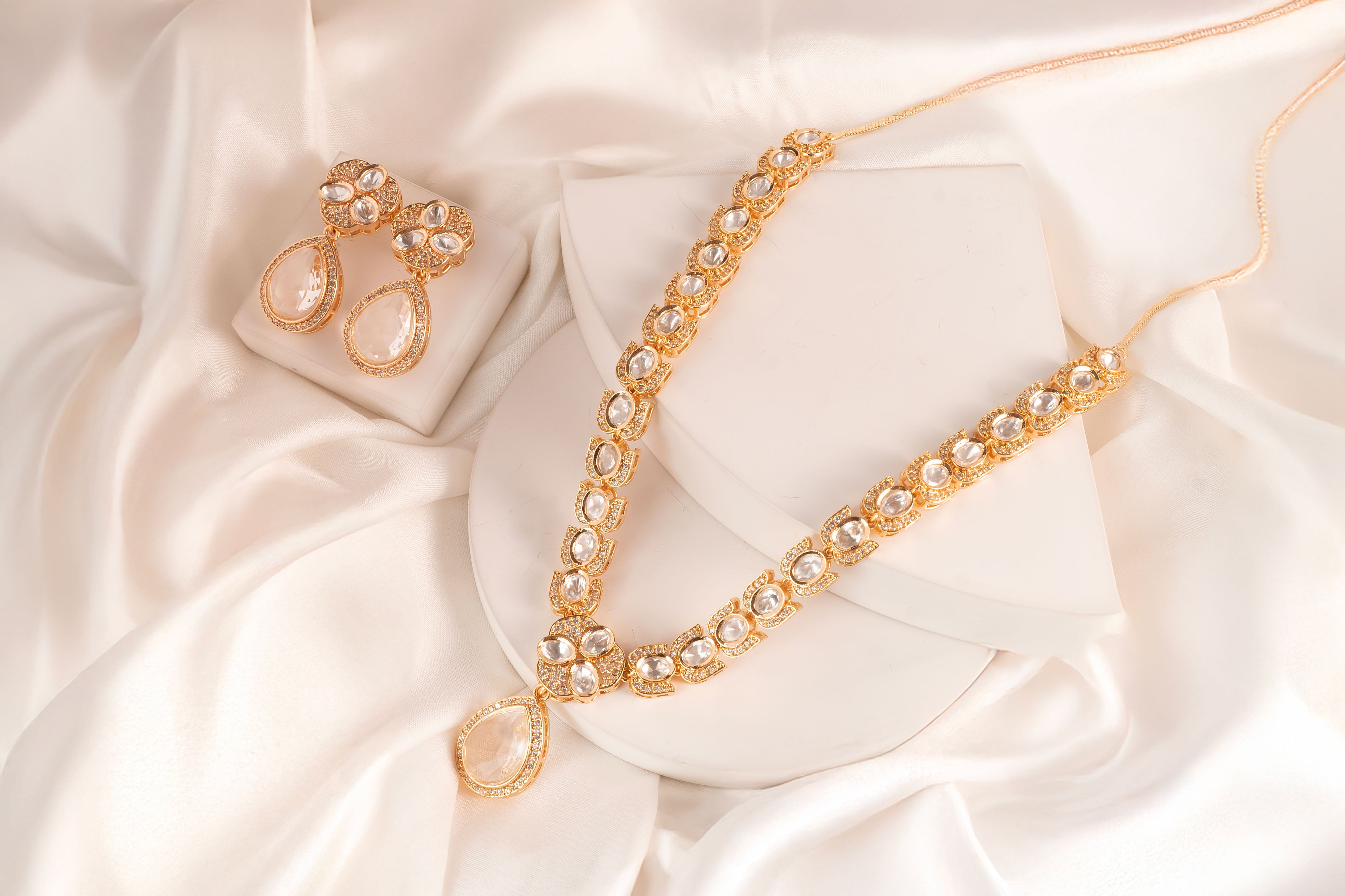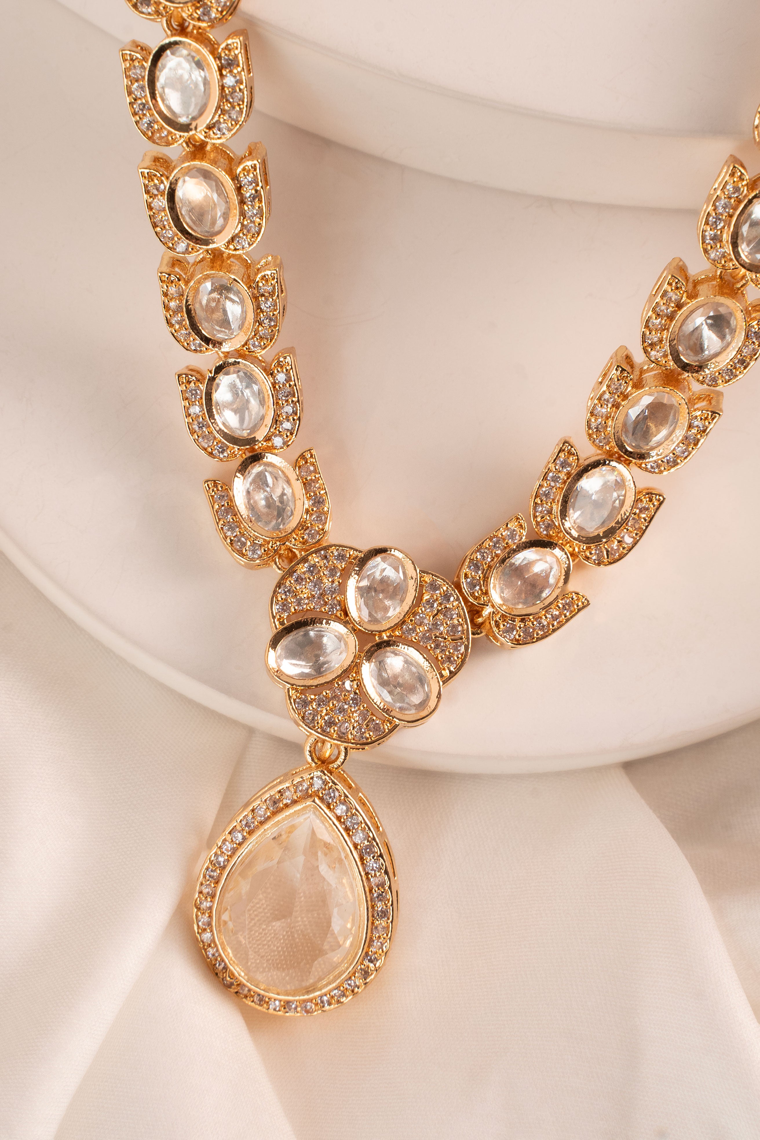 Aesha Kundan Necklace Set – Ivory Elegance in Gold