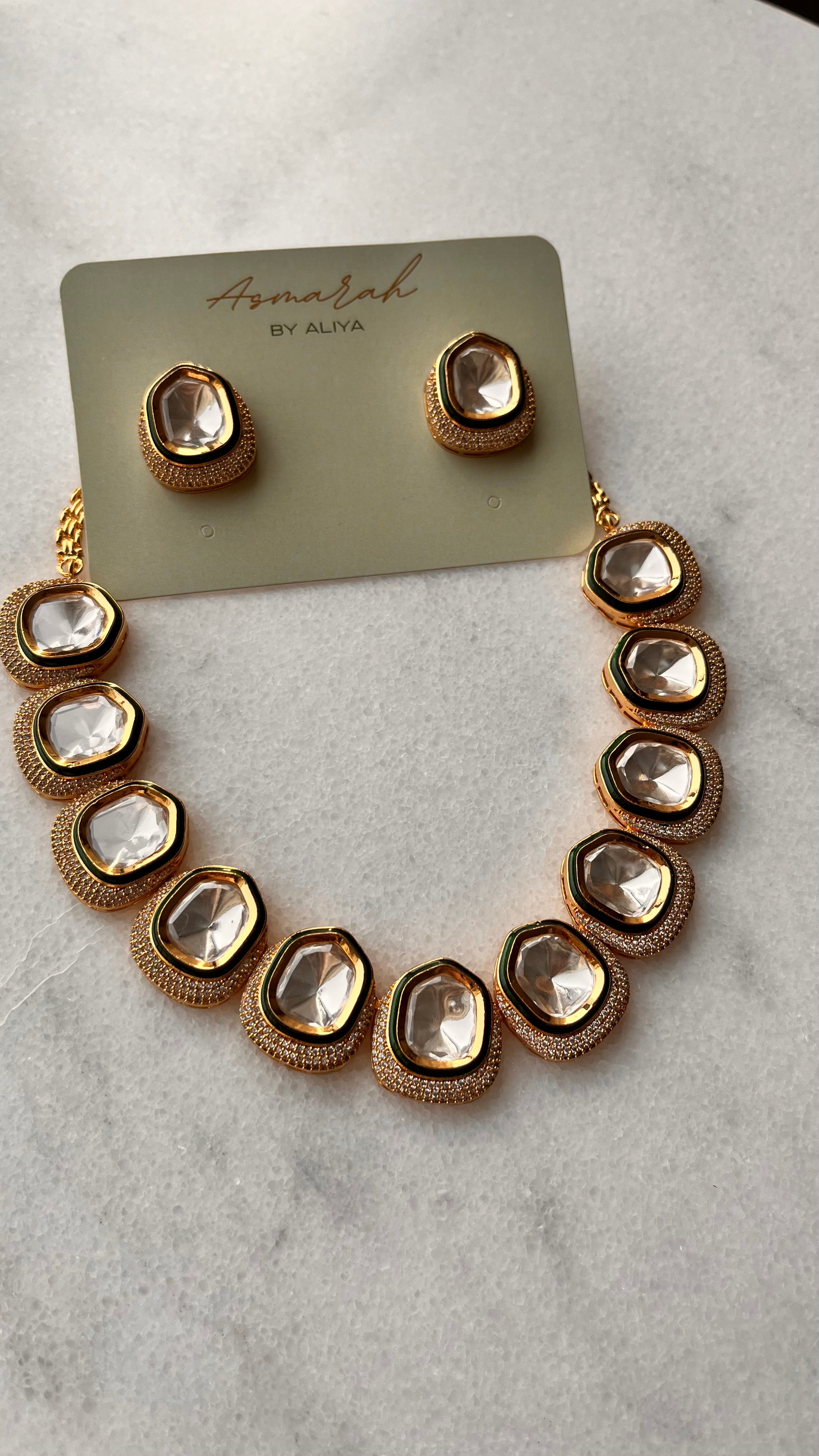 Anabiya Kundan AD Set (2 earrings and Necklace)