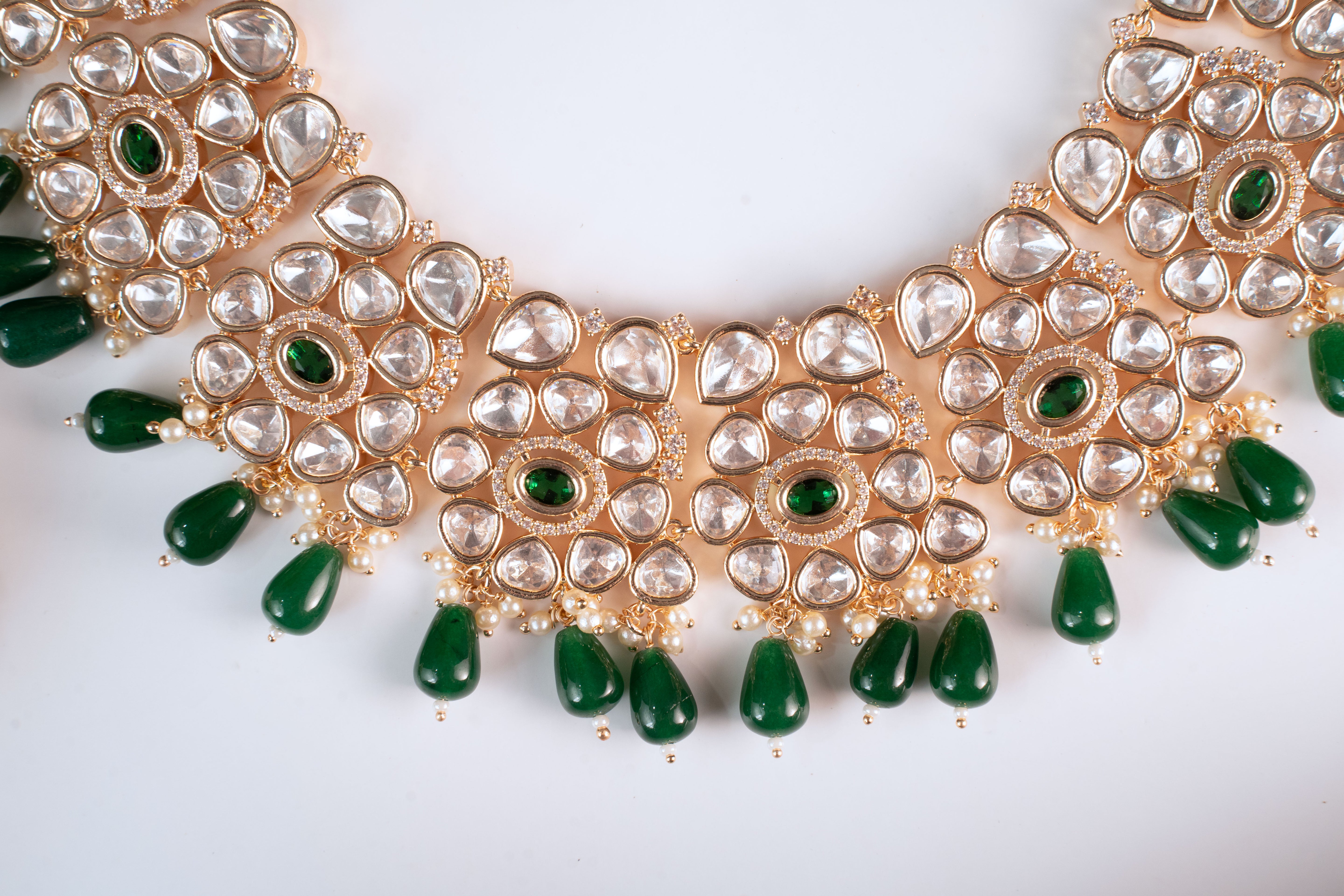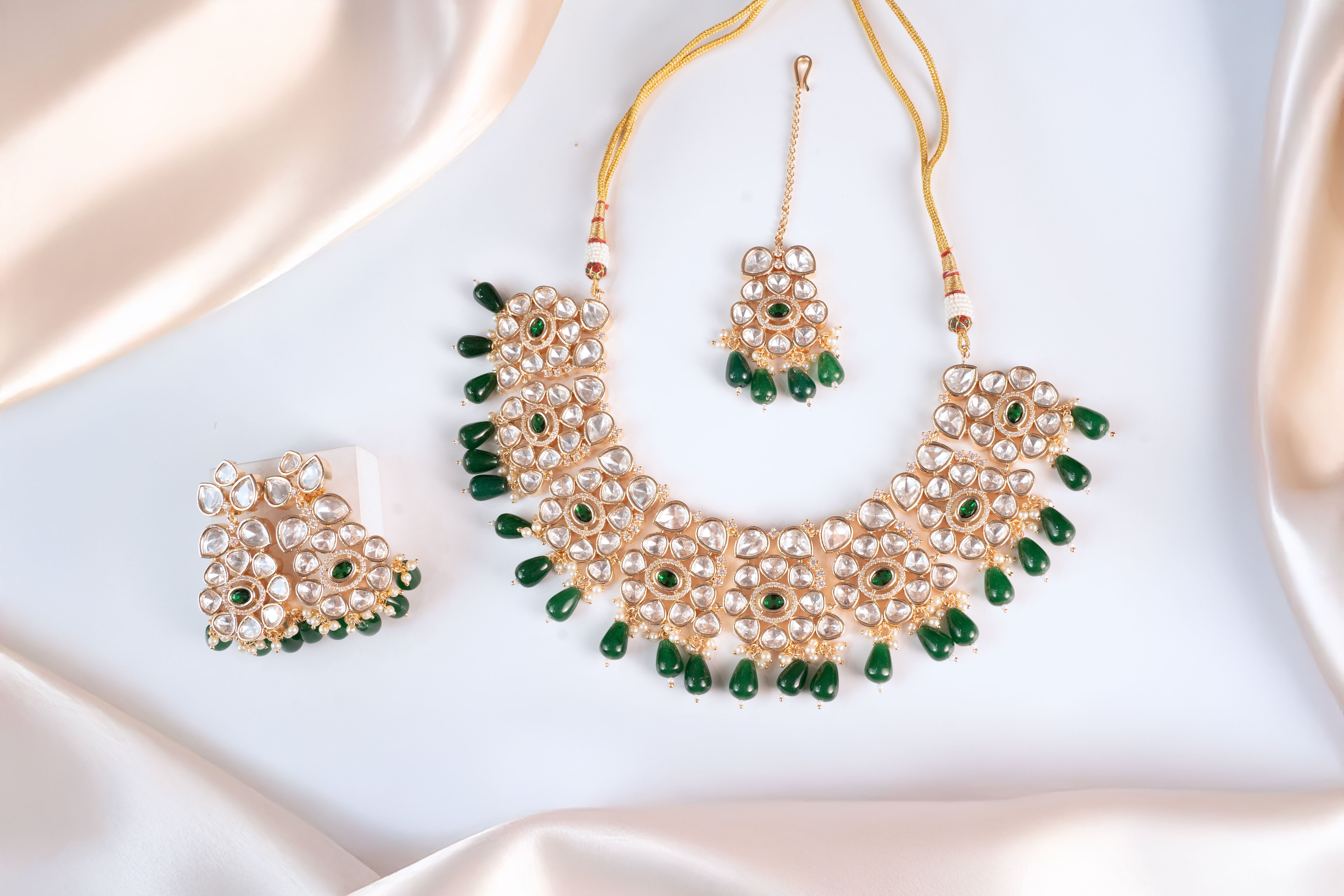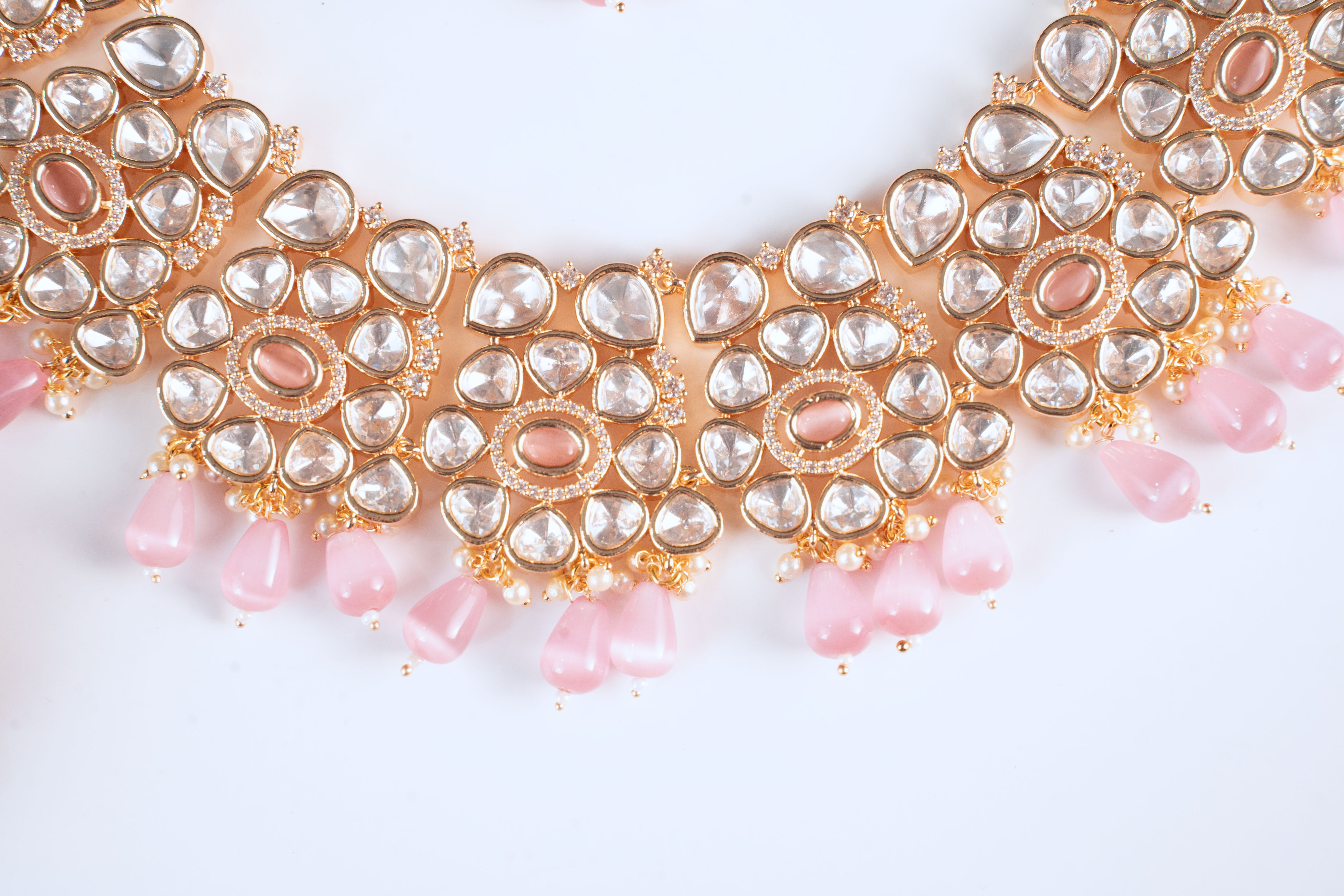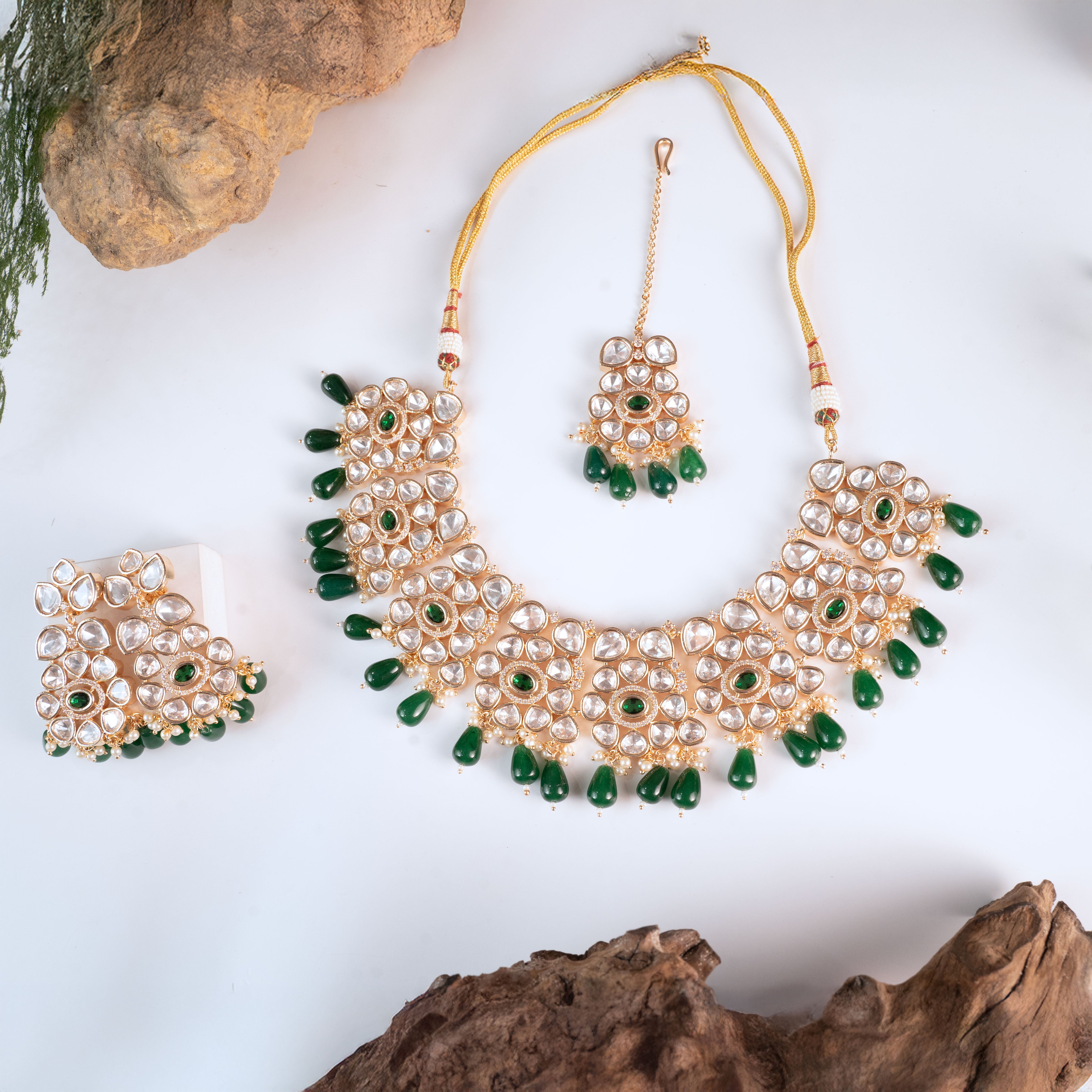 Crafted with uncut-style Polki stones that shimmer softly and elevate your entire ensemble. -