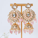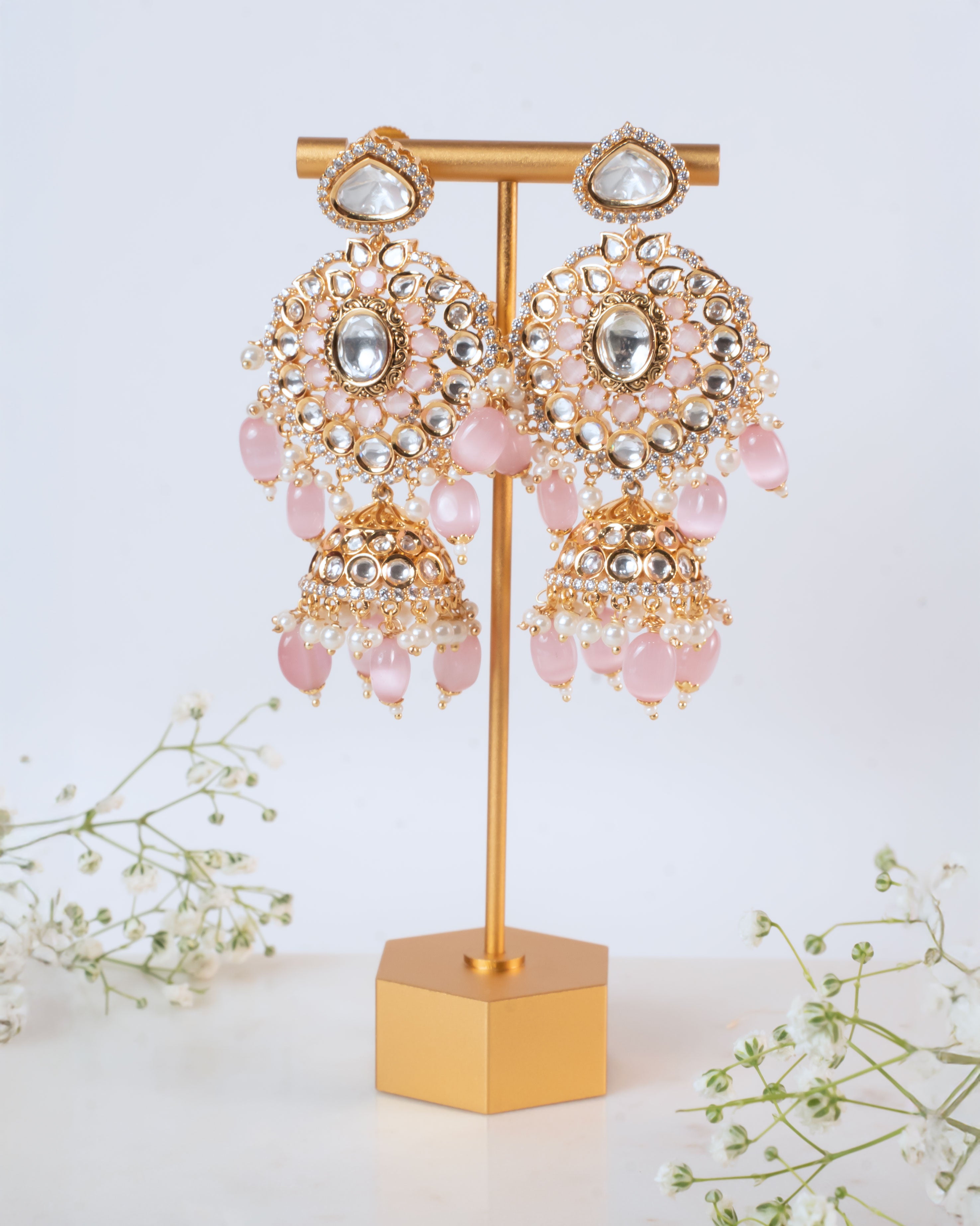 The Asra Kundan Earrings Set is a romantic celebration of elegance and grandeur. Drenched in soft pink hues and wrapped in traditional chandelier styling, this pair is a showstopper for the woman who isn’t afraid to make heads turn—gently.