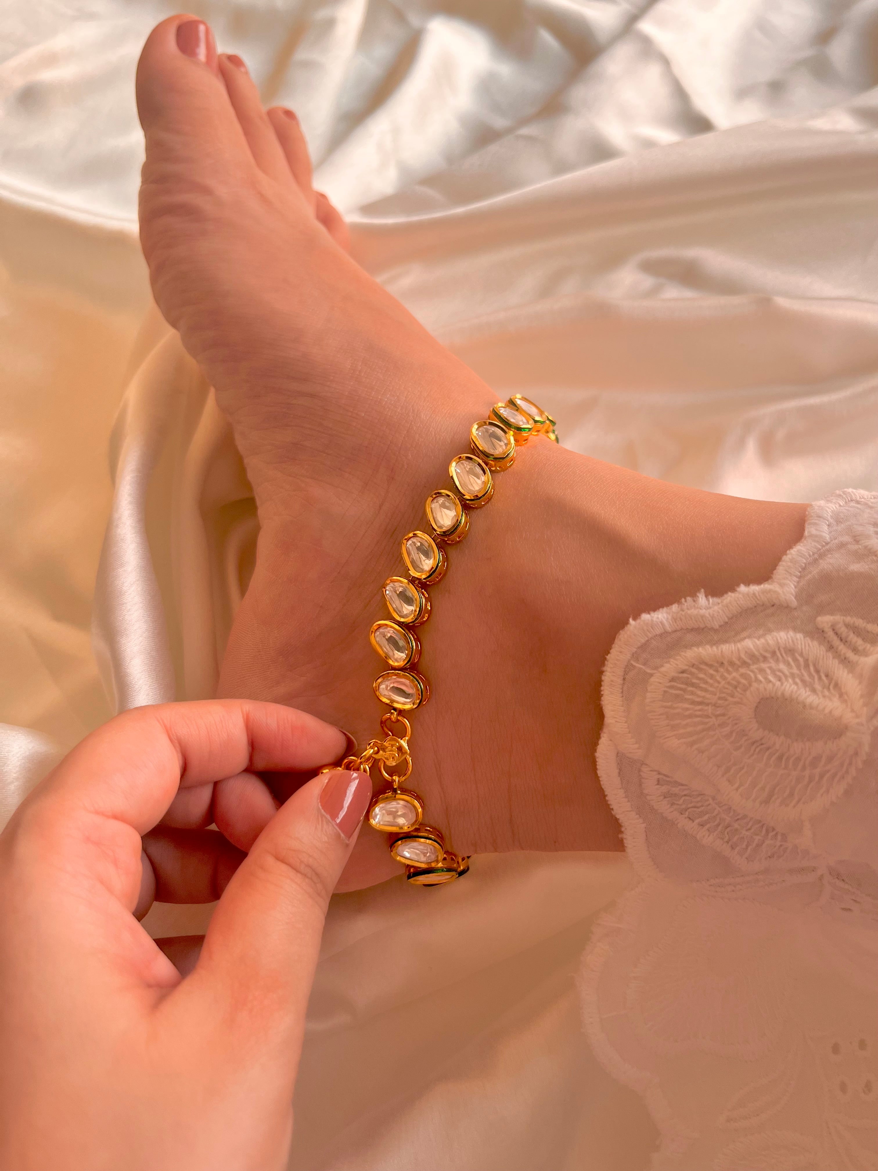 Ayana Kundan Golden Anklet(set of2)