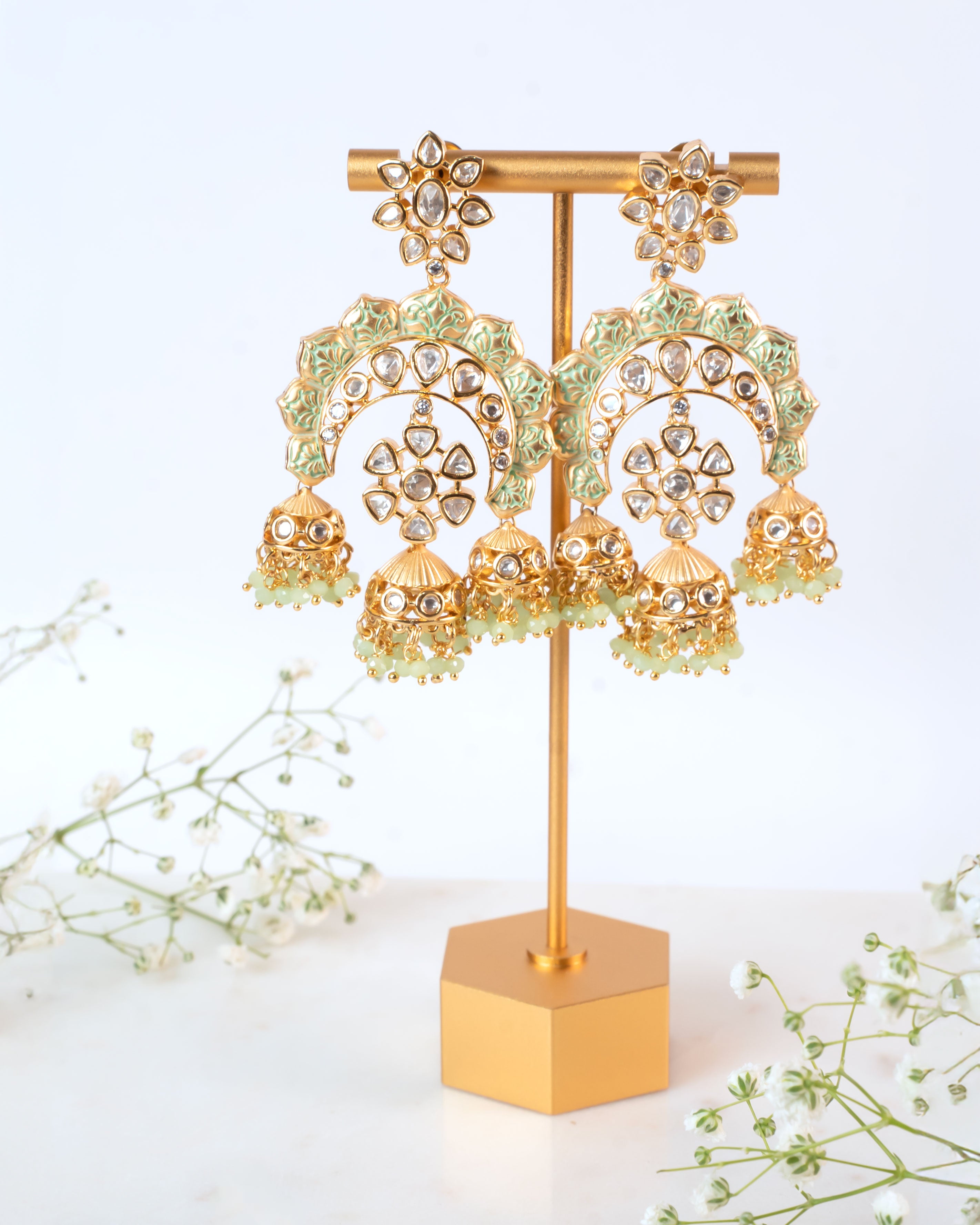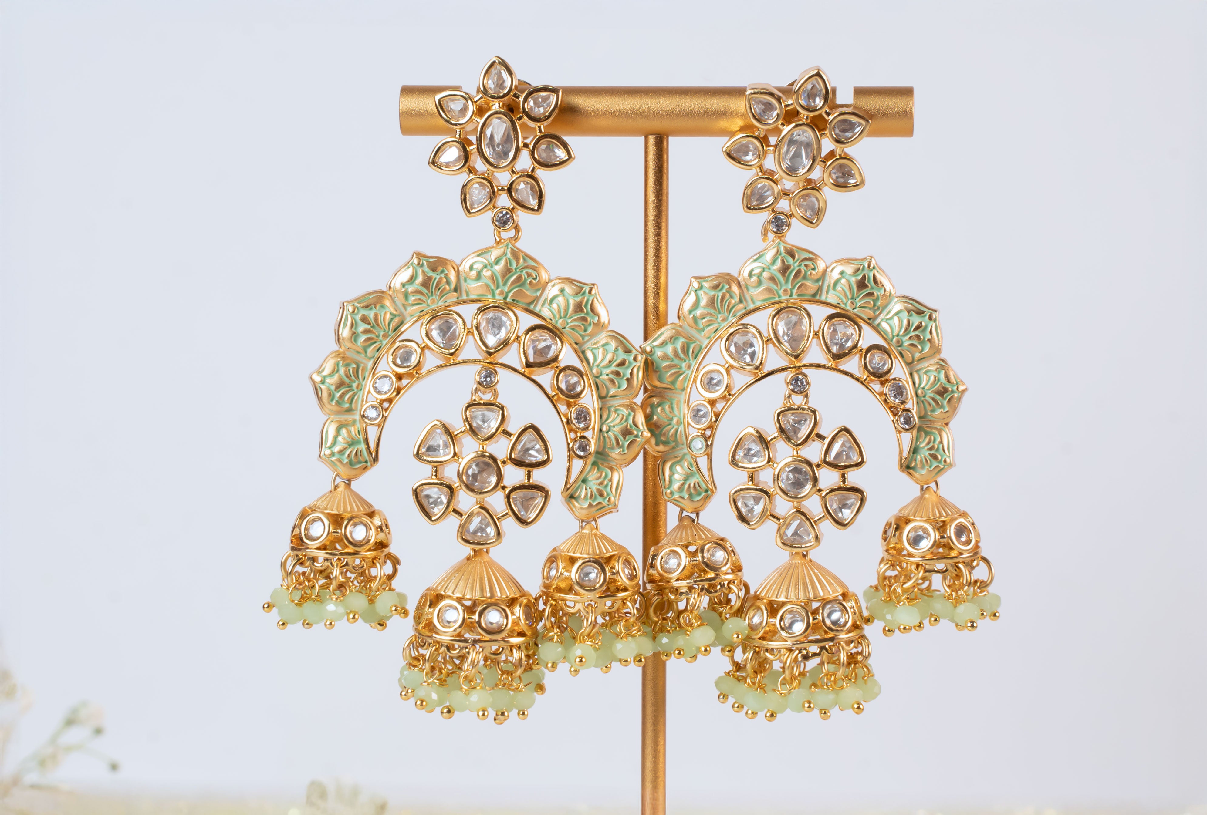 Let the Dhaani Green Kundan Earrings be your go-to accessory for every celebration and elevate your style with their timeless charm!