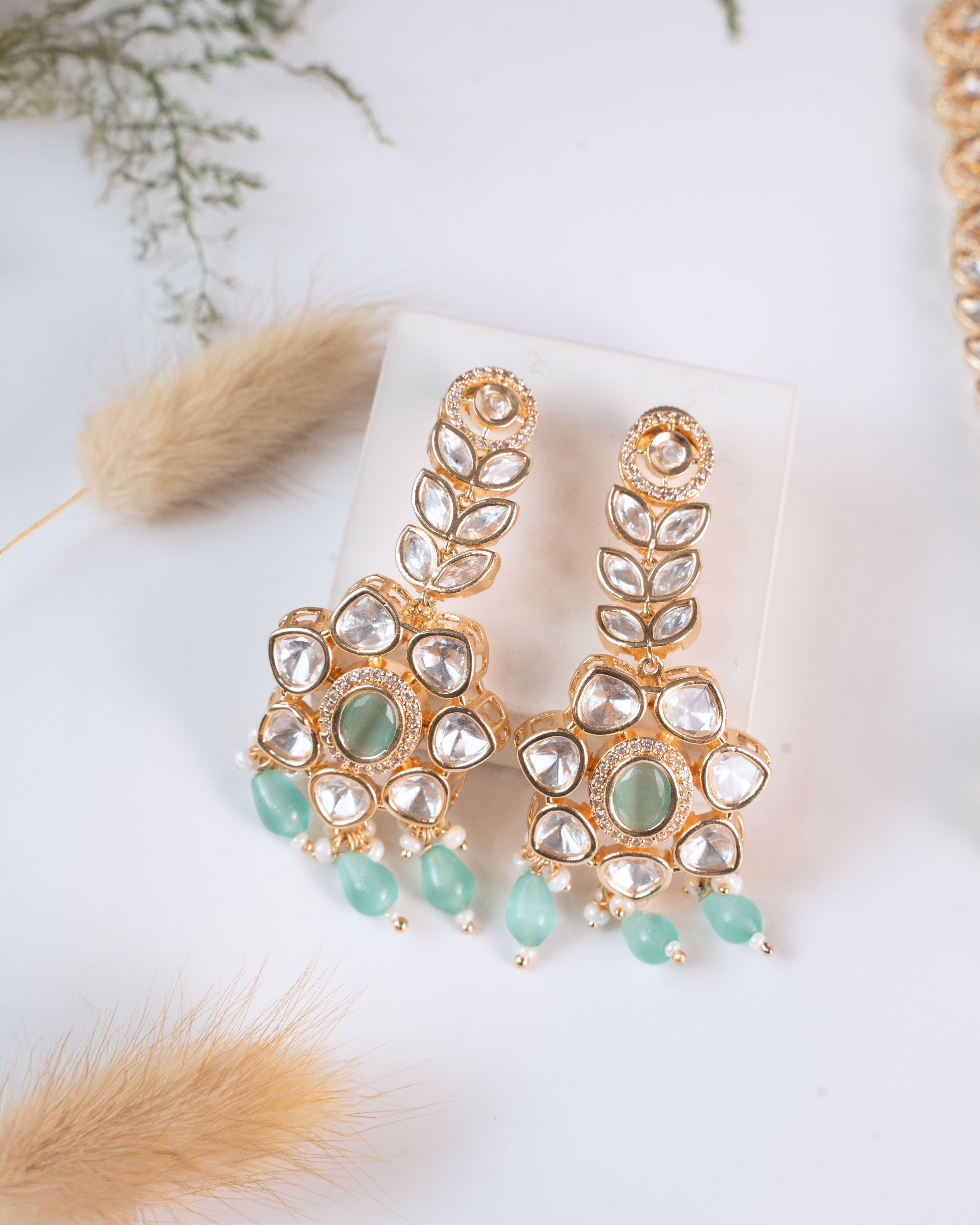 Adorned with uncut-style Polki stones, surrounded by fine detailing that adds depth and brilliance. -
