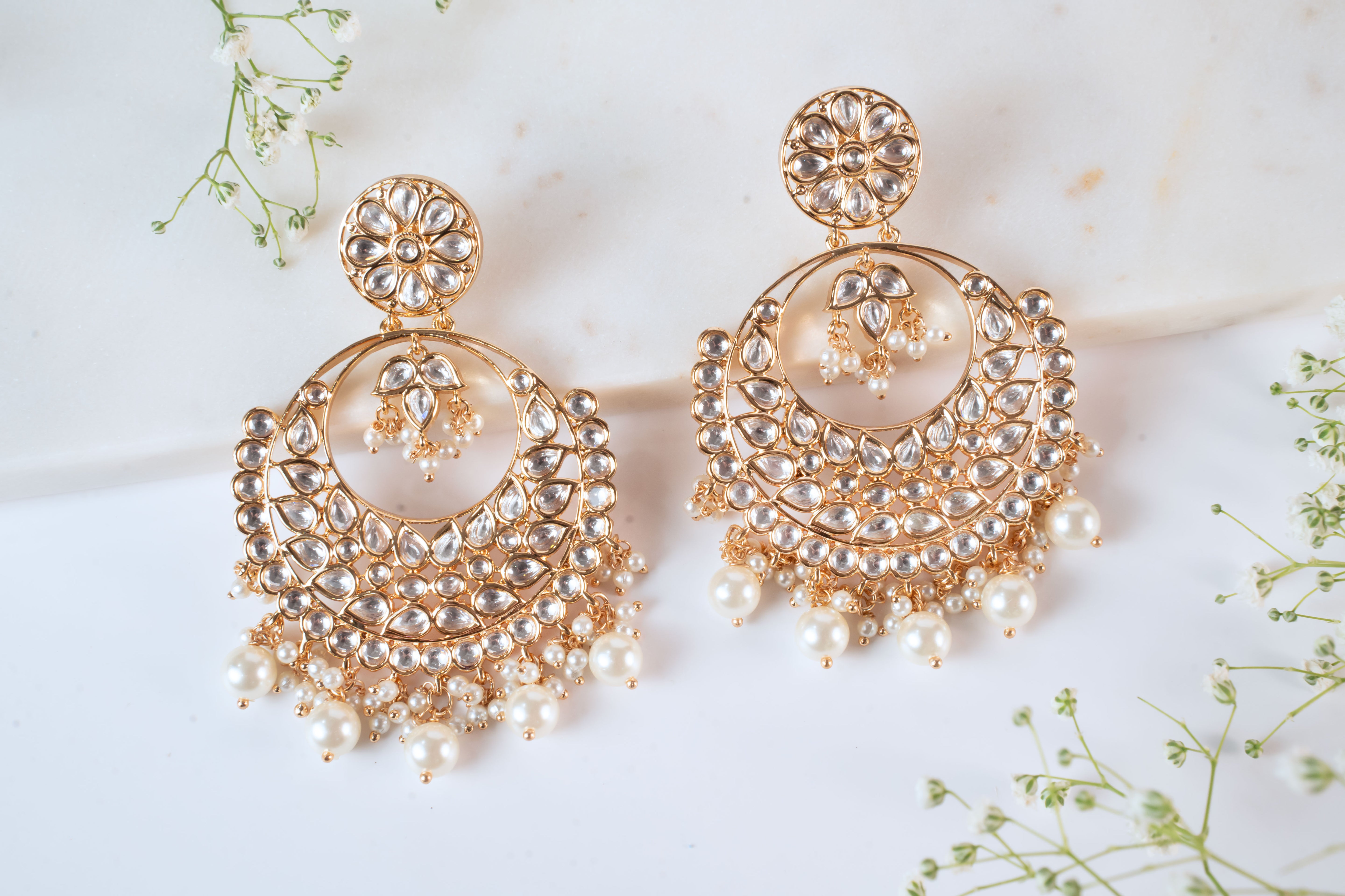 - Heritage-inspired Chandbali design, showcasing intricate Kundan detailing.