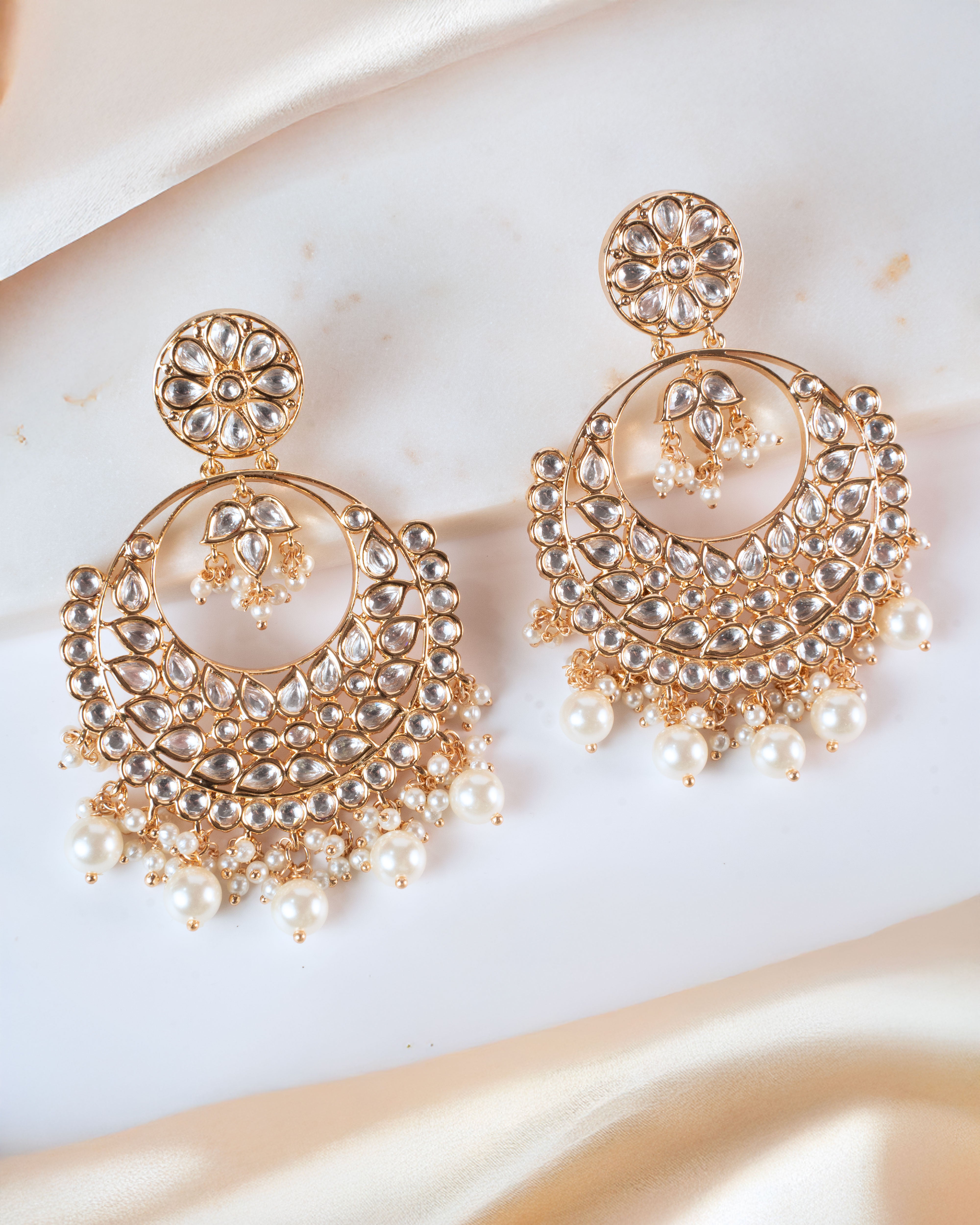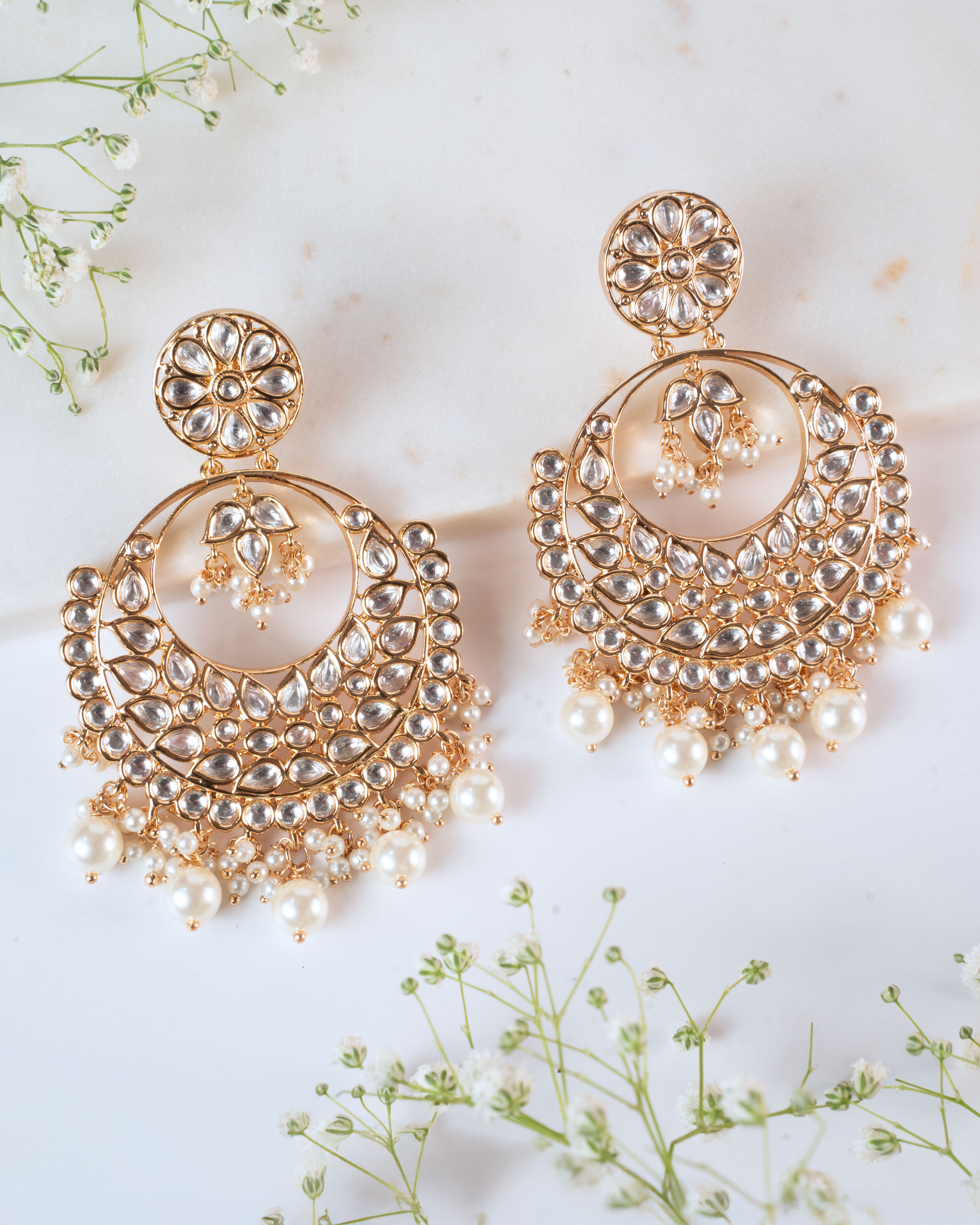 Mallika Ivory Kundan Chandbali Earrings – Timeless Elegance