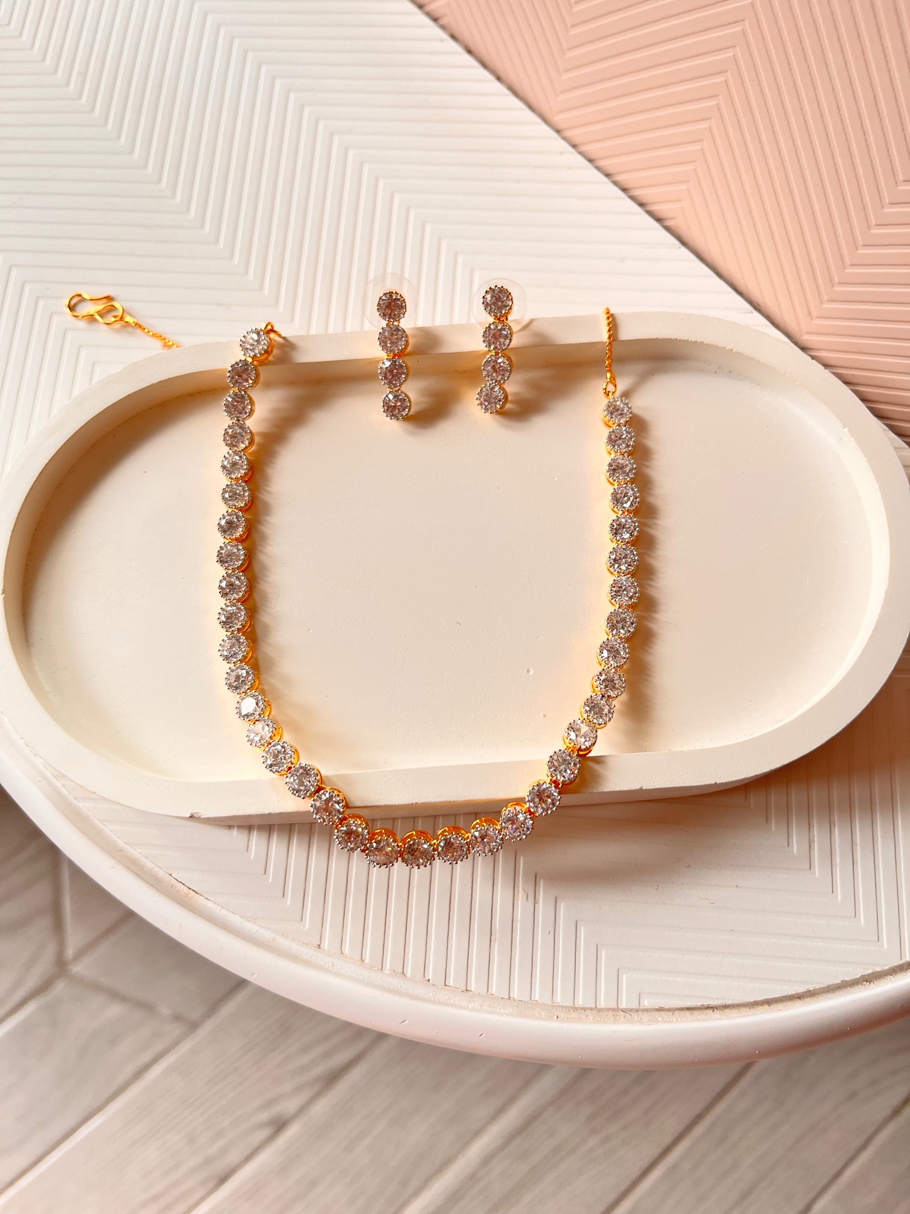 Monica Single layer American Diamond Necklace Set