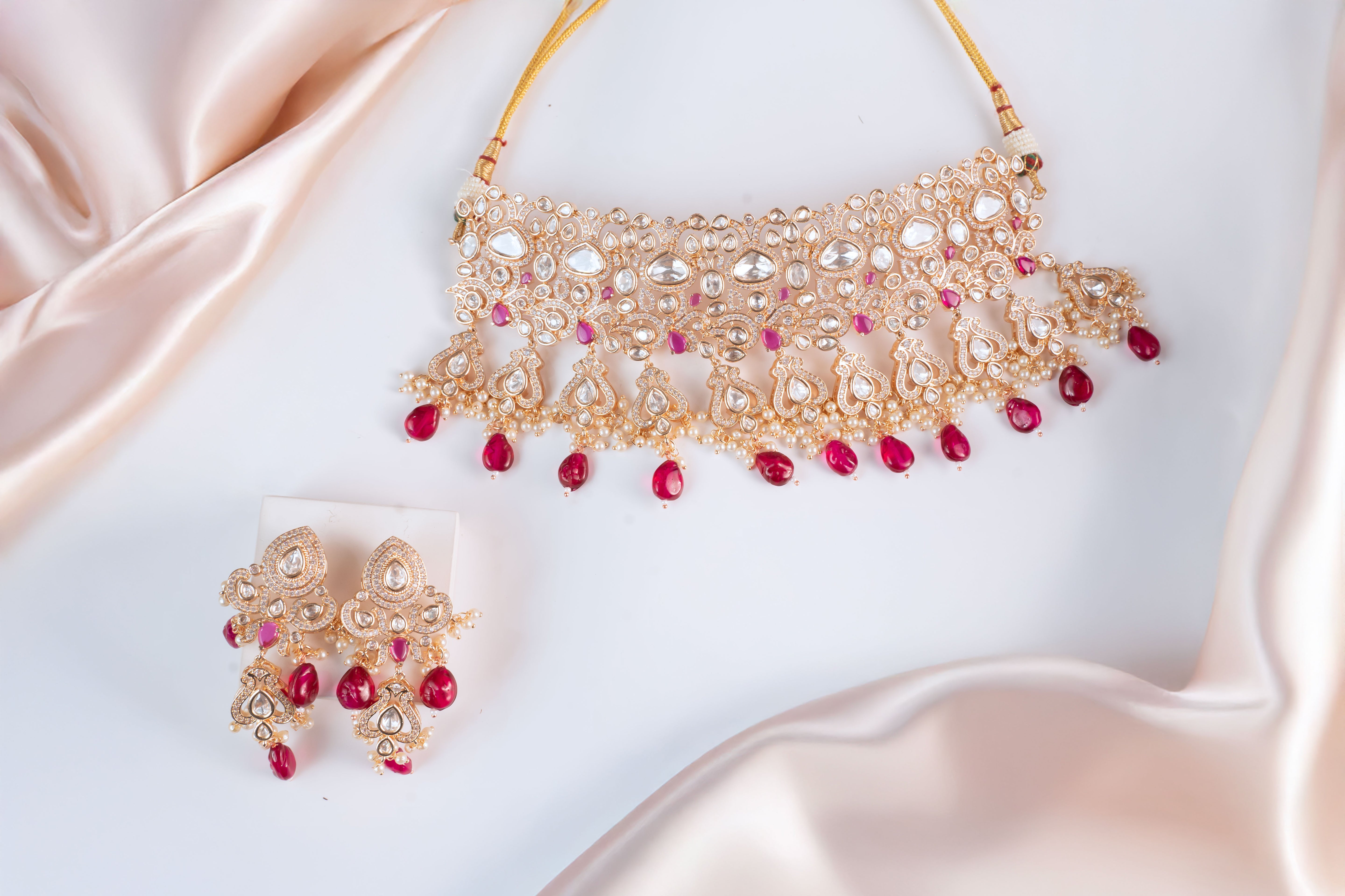 Mumtaz Ruby Red Kundan Choker Set - Royal Passion