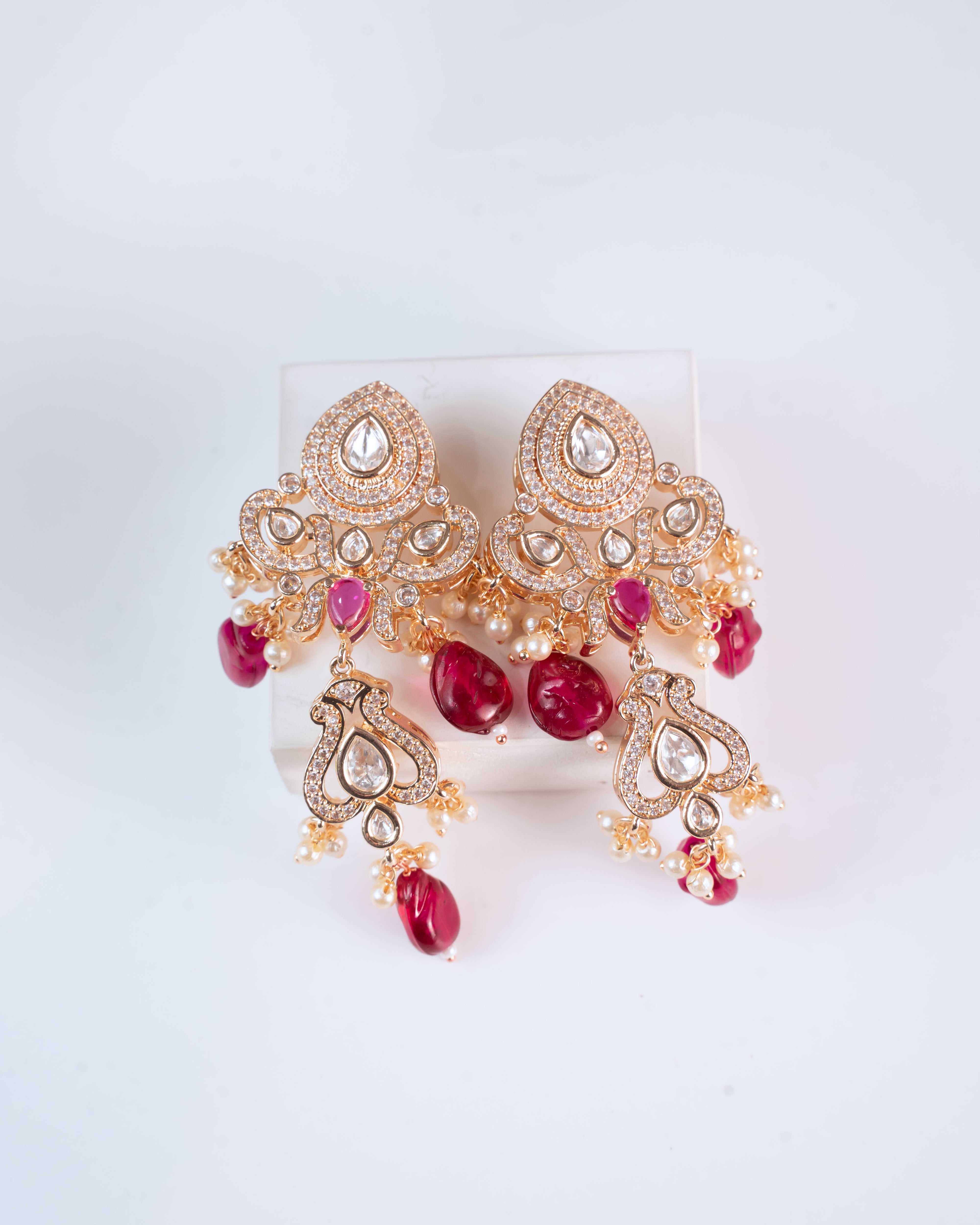 The rich ruby droplets create a striking contrast against the golden base and pristine white stones, symbolizing passion and prosperity. Perfect for wedding ceremonies, festivities, or any celebration where you deserve to shine.
