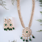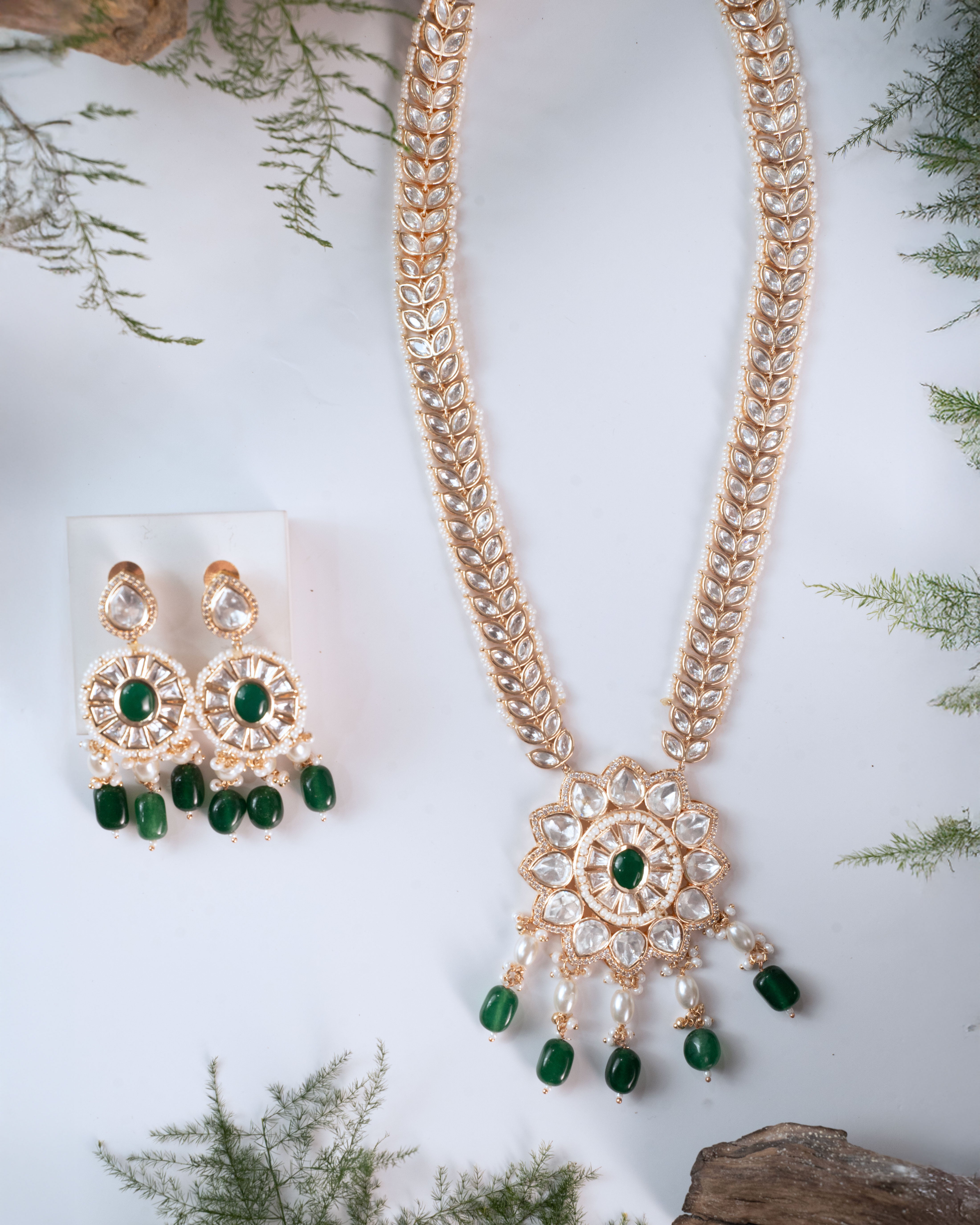 Let your style echo royalty with the Noor-e-Jahan Kundan Necklace Set – a timeless statement piece that brings grace, tradition, and a touch of grandeur to your jewelry box. Designed to dazzle, this long necklace with a delicate pendant reflects the regal beauty of its name and is perfect for celebrations, weddings, and festive moments.