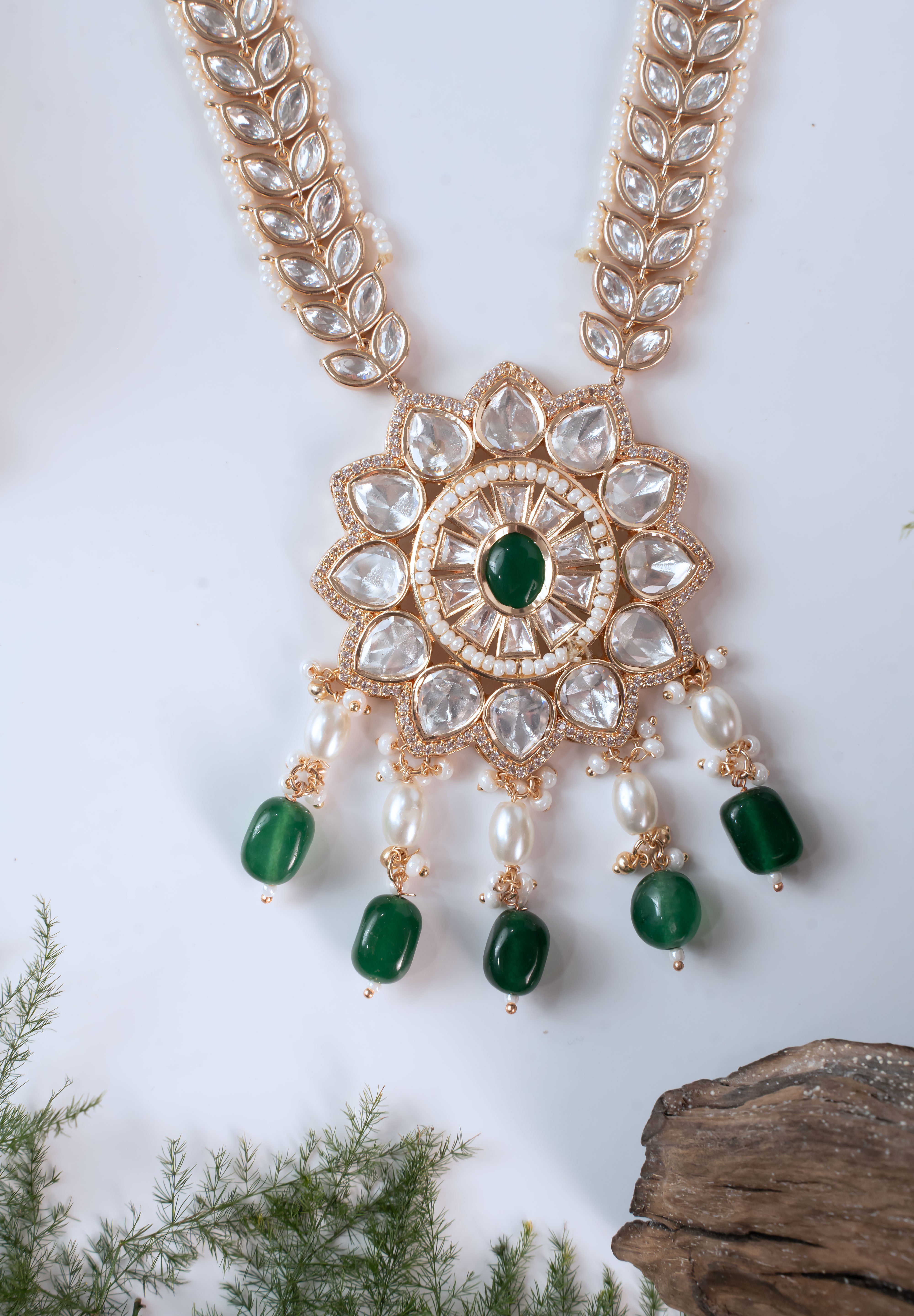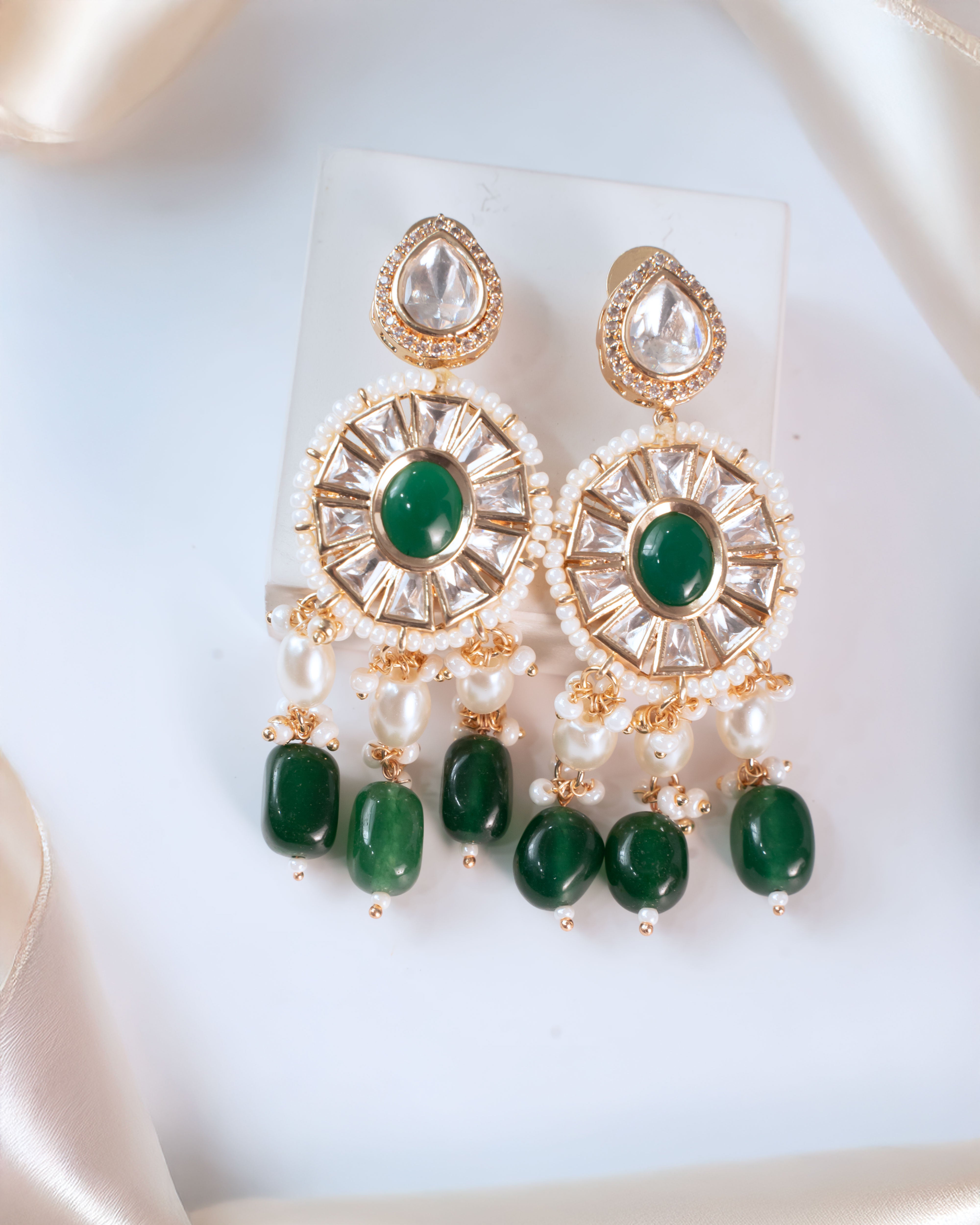 Featuring carefully set Polki stones, known for their uncut brilliance and vintage charm, each piece glows with effortless beauty. -