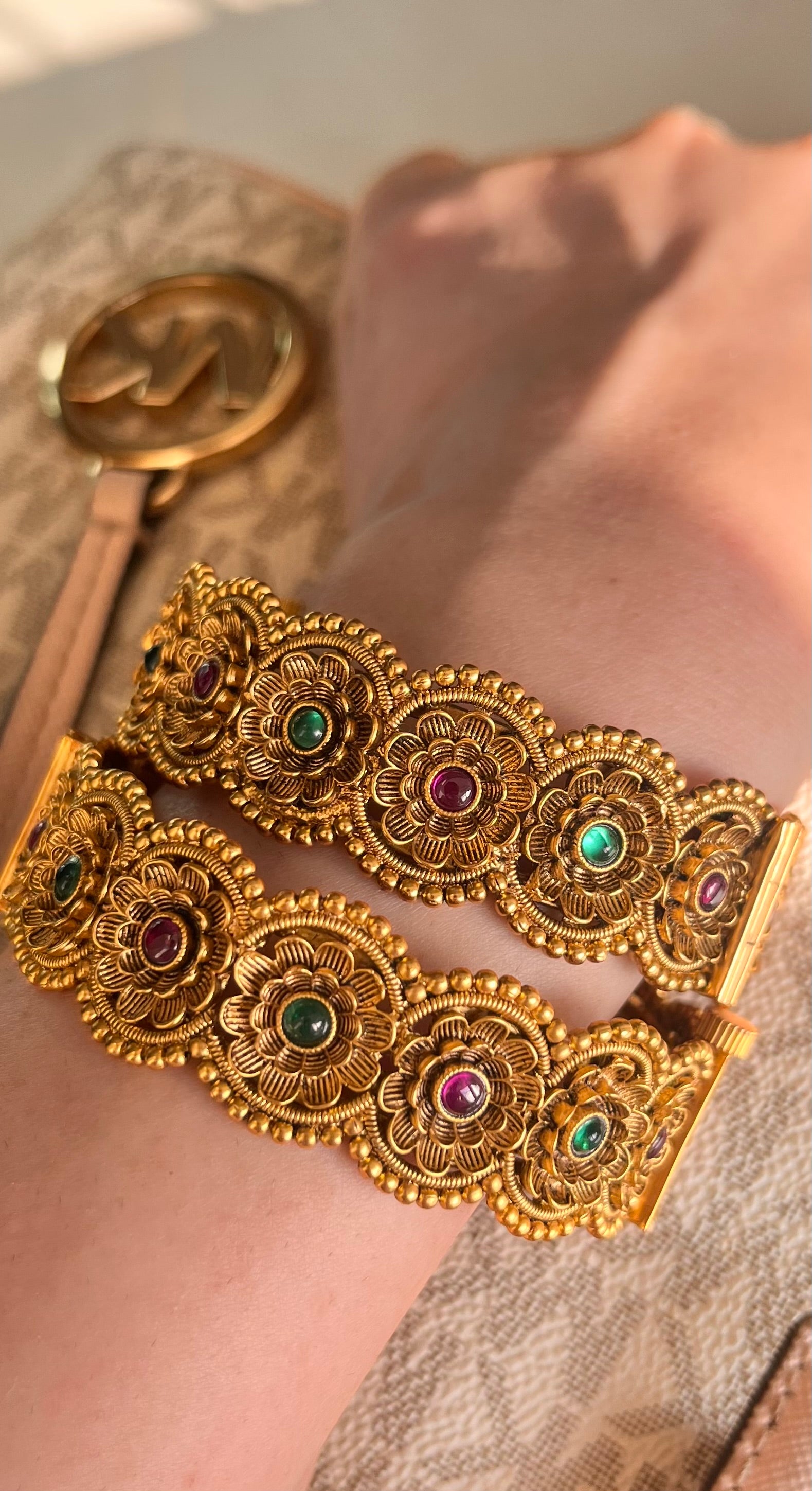 Delicate floral carvings inspired by vintage temple jewelry