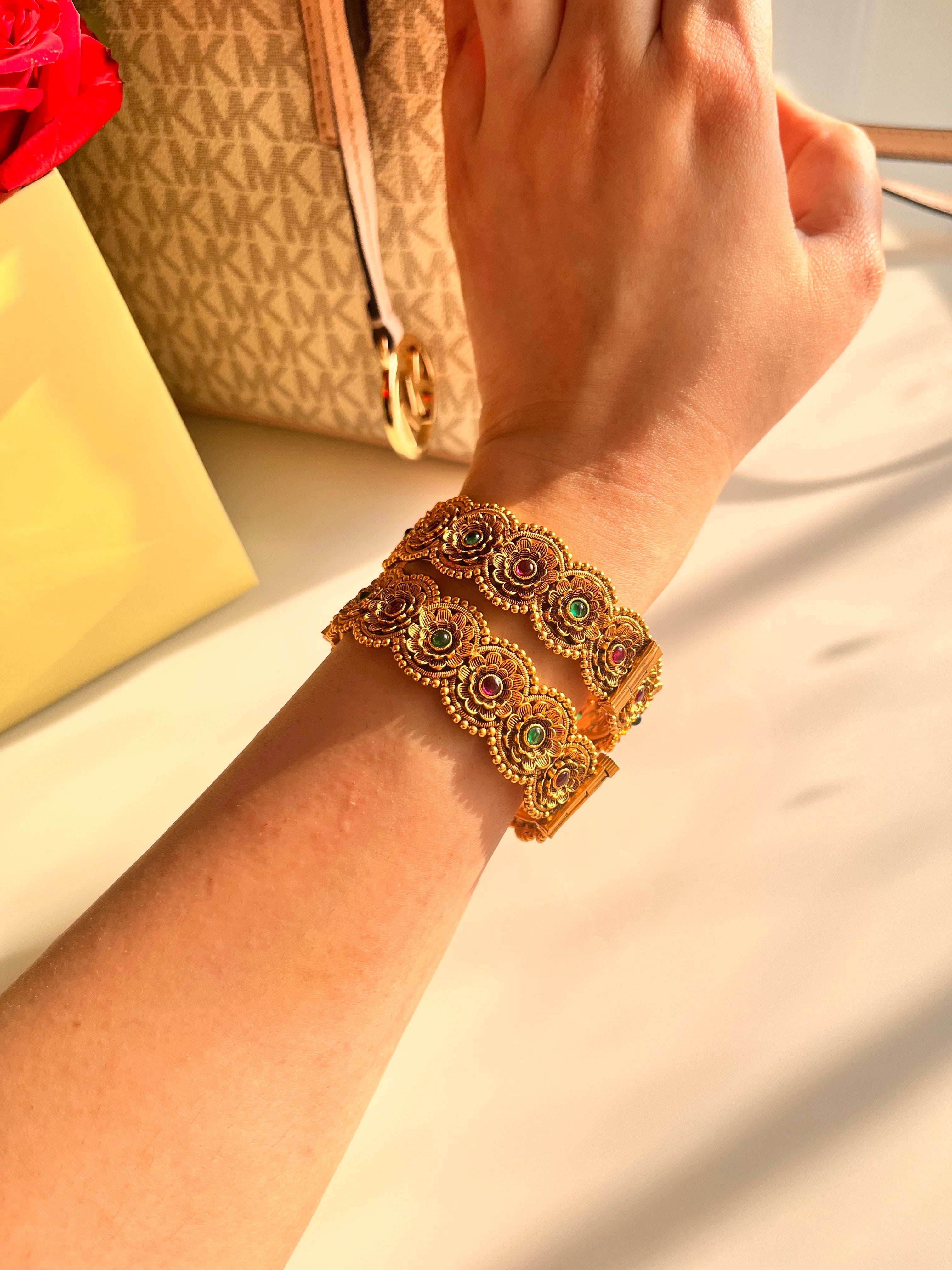 Stack them with simpler bangles for a grand wedding-ready look