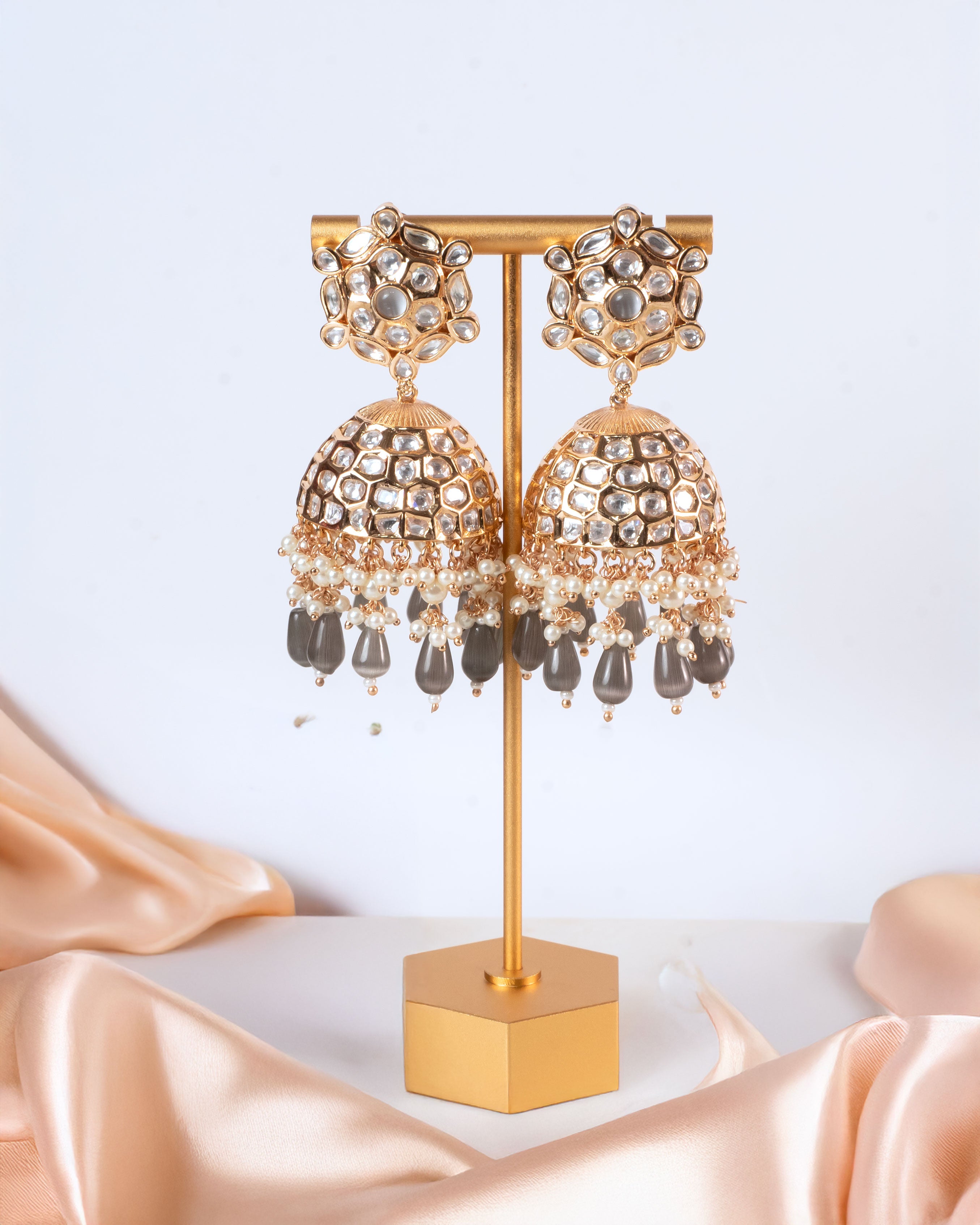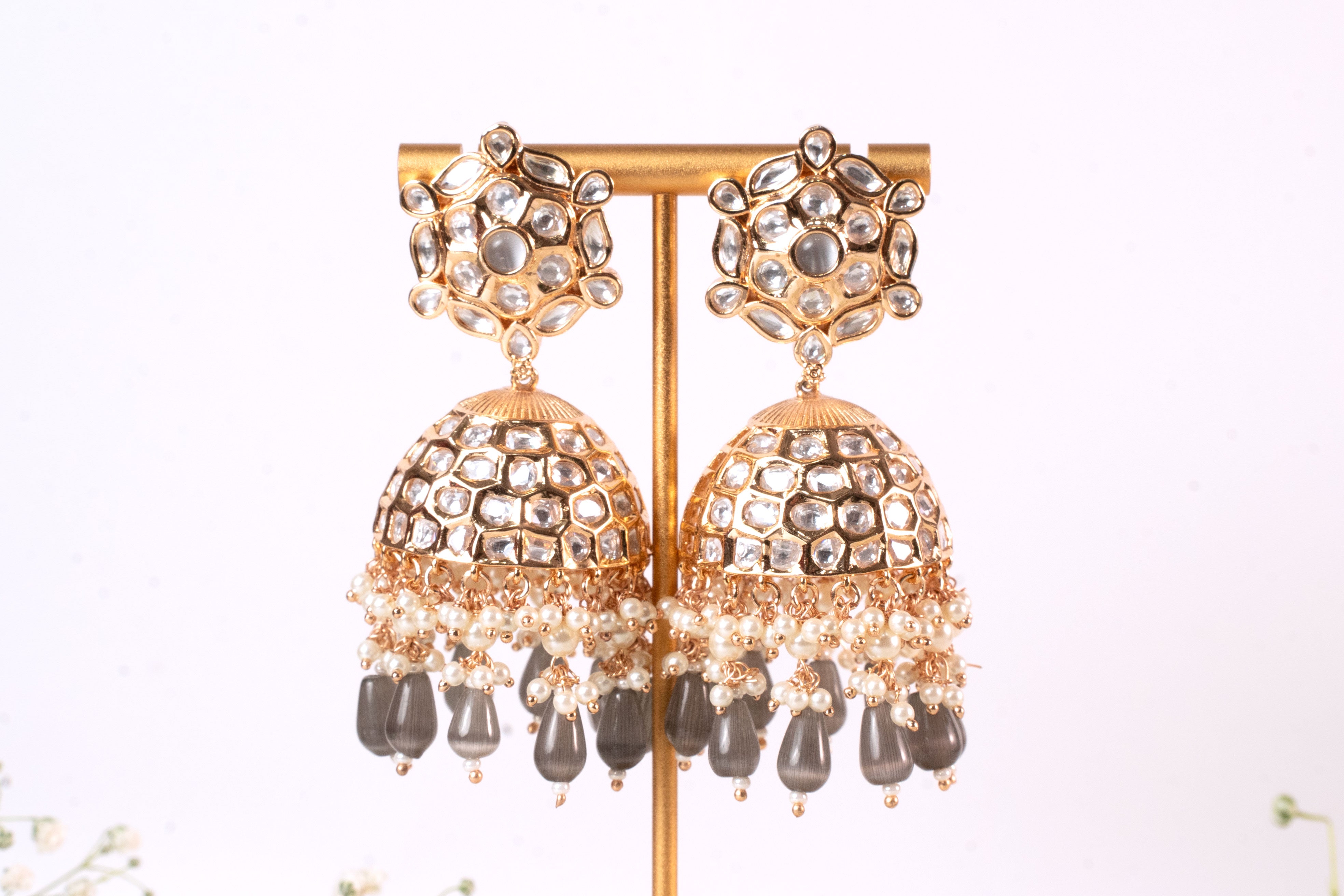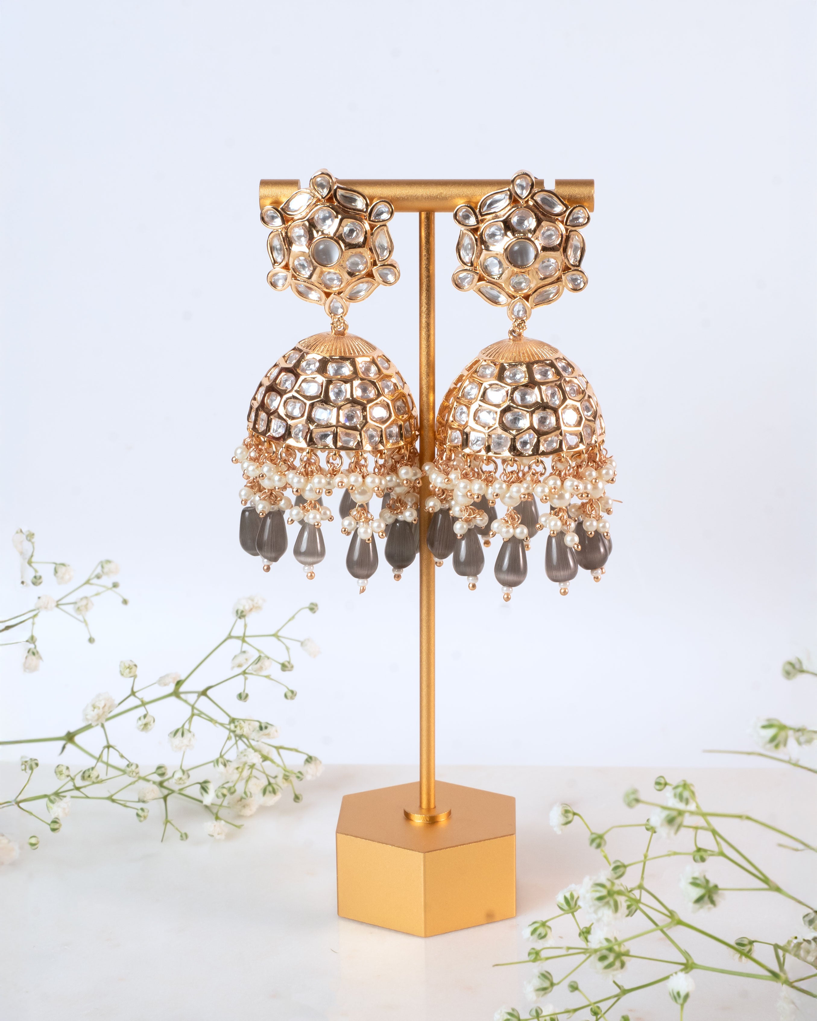 Suhani Gray Kundan Jhumka Earrings – A Perfect Blend of Tradition and Elegance