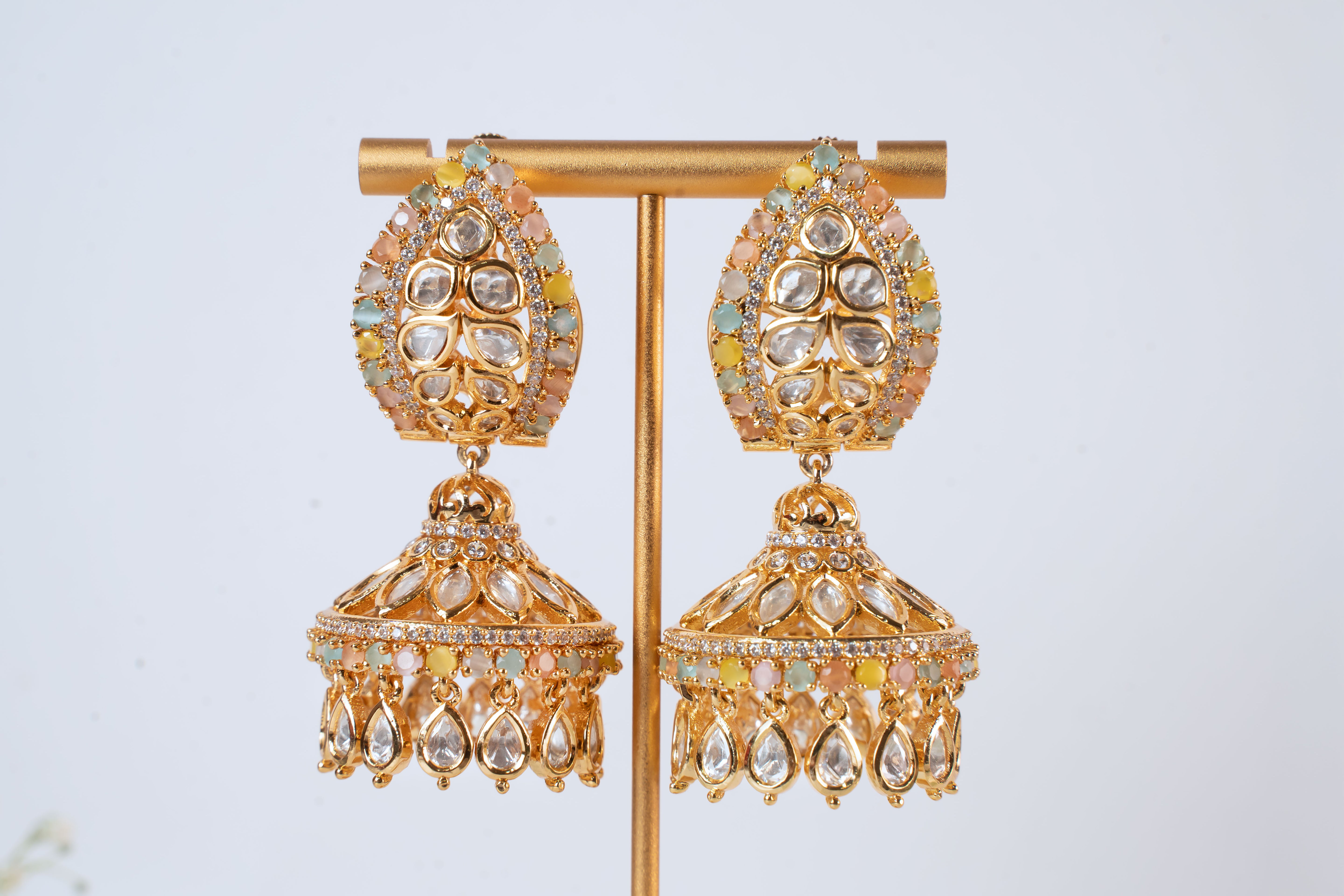A stunning fusion of classic jhumka shape with a playful pastel palette