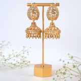 Step into a pastel dream with the Urwa Multicoloured Kundan Earrings — where tradition meets artistic flair. These dome-shaped jhumkas are adorned with a delightful burst of hand-set multicoloured pastel stones, radiant kundan, and delicate ivory bead detailing. The soft hues paired with high-gloss golden electroplating offer a vibrant yet refined aesthetic perfect for modern festive dressing.